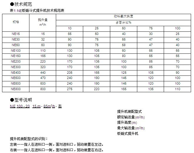 NE系列板鏈式提升機是江森機械公司引進國外同類產(chǎn)品先進技術(shù)開發(fā)的產(chǎn)品。是目前國內(nèi)較為可靠的一種垂直提升設(shè)備,已被廣泛用來提升各種散狀物料,如:礦石、煤、水泥、水泥熟料、糧食、化肥等。在各工業(yè)國家,這類提升機應(yīng)用極廣。由于其高效節(jié)能,已成為替代HL及TH型等環(huán)鏈式提升機的理想設(shè)備。
