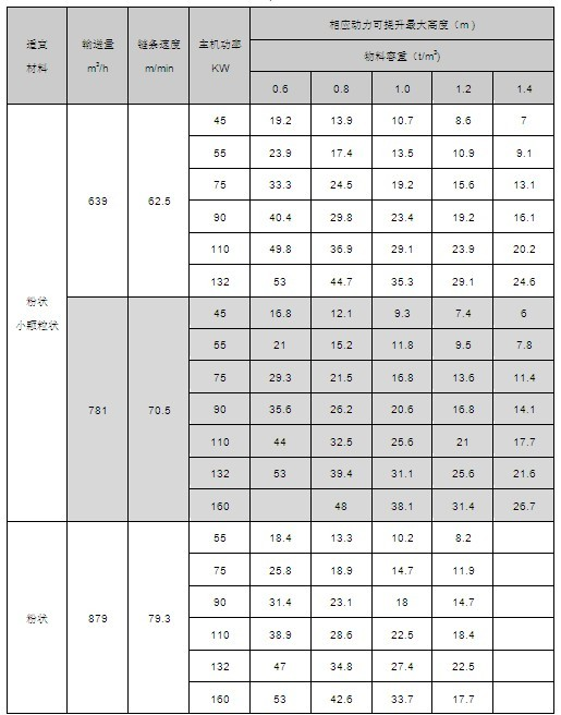 NSE系列高速板鏈斗式提升機(jī)共有九種基本型號(hào):NSE100、NSE200、NSE300、NSE400、NSE500、NSE600、NSE700、NSE800、NSE1000,每種型號(hào)根據(jù)輸送物料的不同,選擇不同的提升速度,提升速度上限<70m/min,提升高度上限65m。另外,奧普公司還可根據(jù)用戶要求輸送量介于上述型號(hào)之間的擴(kuò)展型號(hào)。