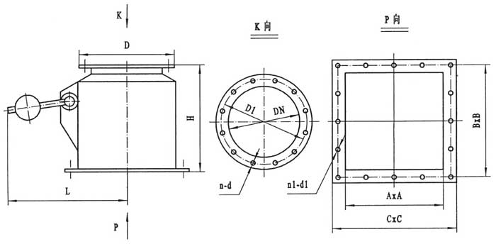 ZFX-H錐形鎖風閥主要由殼體、錐形帽、頂針、閥桿、重錘、彈簧等零件組成,采用鋼板焊接結(jié)構(gòu),設計新穎,結(jié)構(gòu)簡單。錐形鎖風閥利用力矩平衡的方法實現(xiàn)卸灰。當作用于翻板上的物料產(chǎn)生的力矩大于重錘搖桿產(chǎn)生的力矩時,閥板打開向下卸灰。一旦積灰卸去后,重錘與搖桿產(chǎn)生的力矩使閥板迅速關(guān)閉,實現(xiàn)鎖氣。落料的頻率及卸灰量依據(jù)工況需要來調(diào)整重錘位置。
