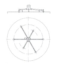 庫頂生料分配是用于生料庫或水泥庫的庫頂作為均勻布料的設(shè)備,來自提升機等輸送設(shè)備輸送過來的干燥粉狀物料,注入分配罐內(nèi),經(jīng)充氣成流化狀態(tài),通過徑向伸出的空氣輸送斜槽向各點分布,形成多點分料。庫頂物料的分配一般以分配罐直徑作為型號規(guī)格,根據(jù)其出料咀數(shù)量可分為四咀、六咀、八咀三種分配形式,出料咀斜度可按工藝在6°至10°范圍內(nèi)選擇,分配生料能力在技術(shù)參數(shù)表中選取。